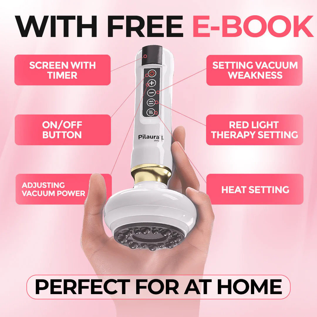 It uses a synergy of red light therapy, infrared heat, adjustable suction, and scraping massage techniques — proven methods for reducing cellulite and improving skin elasticity.