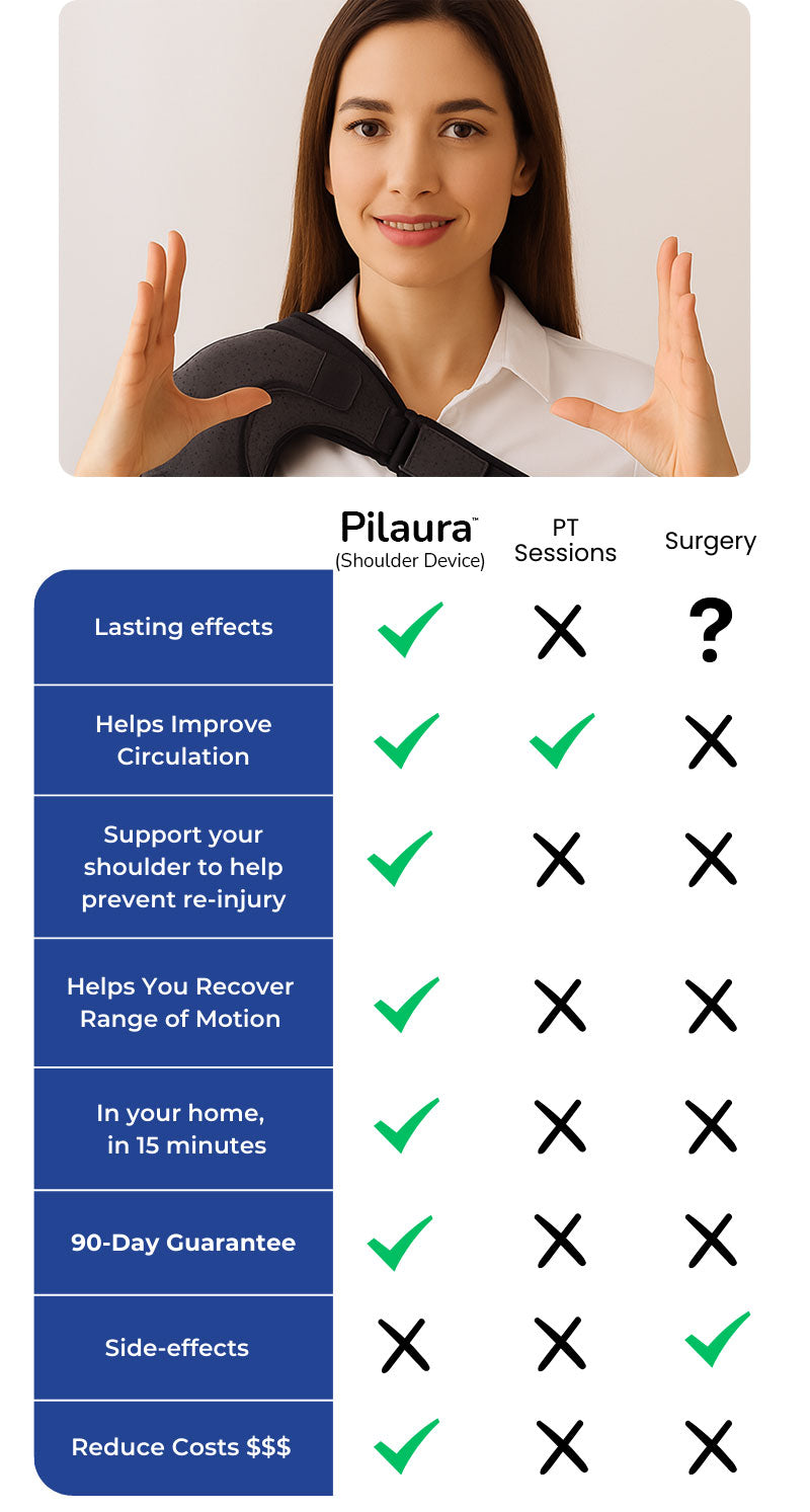 Think about it — physical therapy sessions, doctor visits, or even surgery can cost hundreds or thousands over time. With the Shoulder Device™, you're getting a 3-in-1 therapeutic solution (heat, massage, and compression) that you can use daily, right at home — all for a one-time, affordable price.